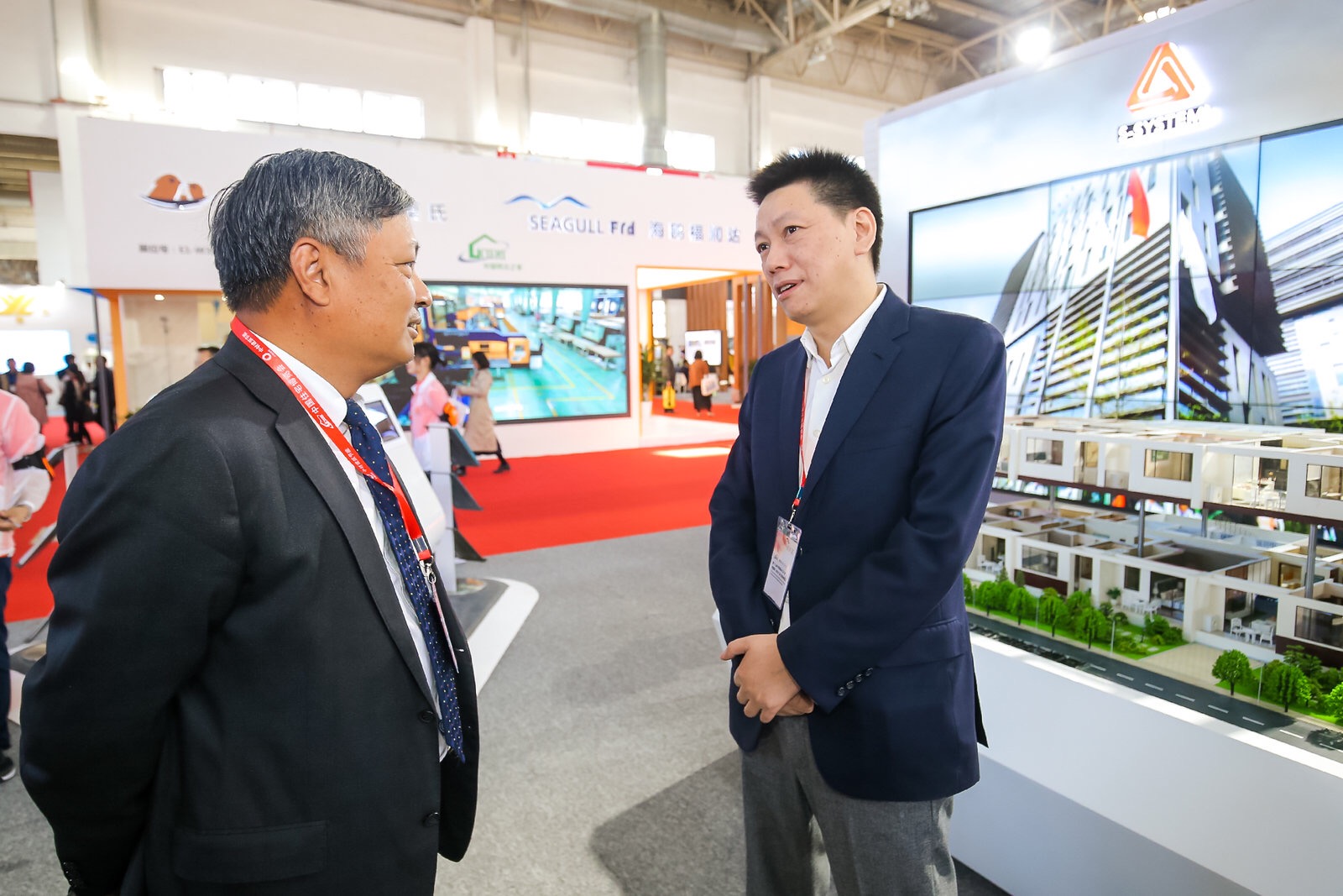 Group President Lai Chaohui (right) exchanges with Mr. Liang Junqiang, Deputy Director of Housing Industry Center, Ministry of Housing and Construction