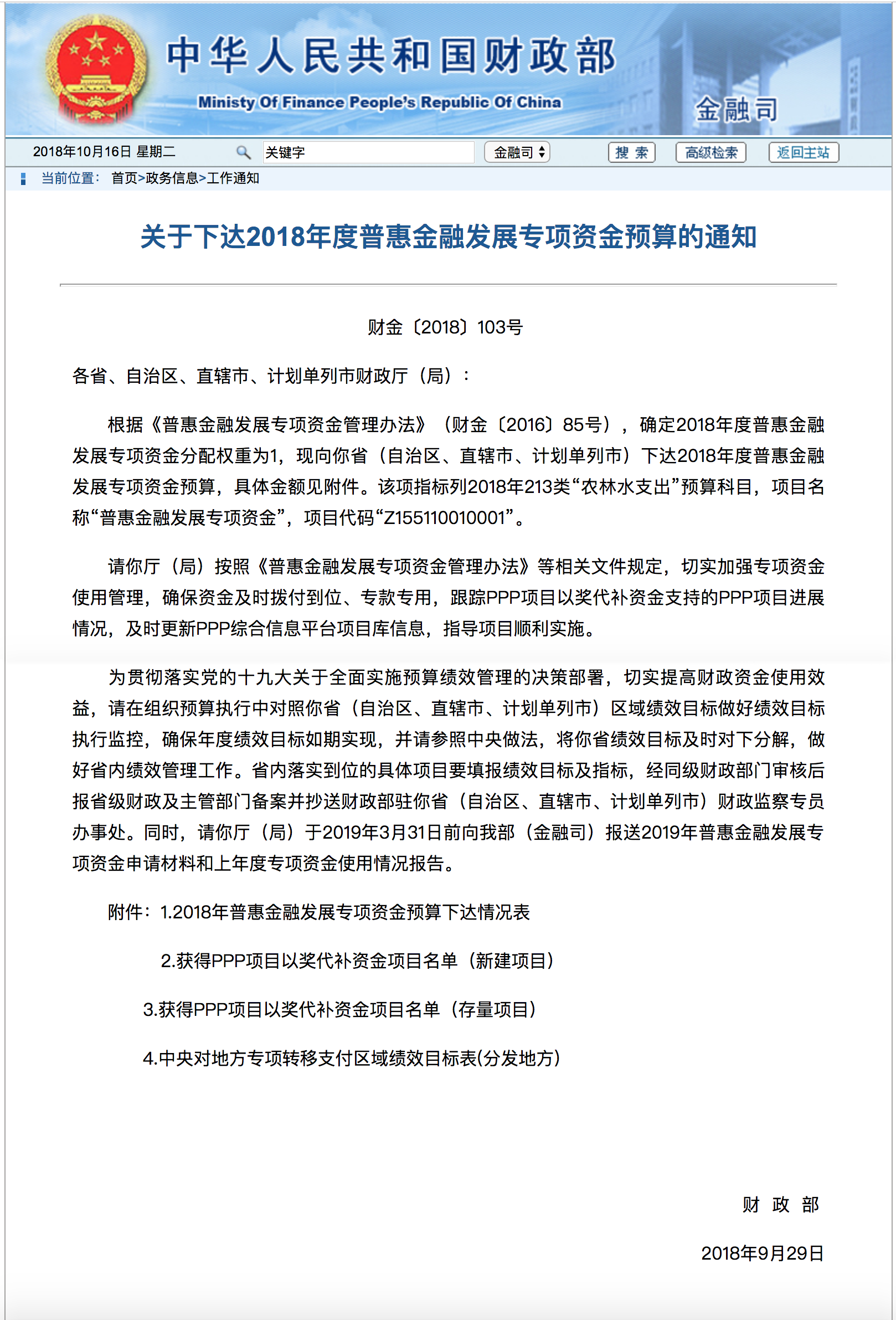 Recently, the website of the Ministry of Finance issued the Circular on the Budget of the Special Fund for the Development of Inclusive Finance in 2018, which issued the Budget of the Special Fund for the Development of Inclusive Finance in 2018 to all provinces (autonomous regions, municipalities directly under the Central Government, cities with separate plans). Four PPP projects such as Jinjiang International Convention and Exhibition Center and Yangde Road in Xuancheng won the bid of Longyuan Construction Group were supported by the Ministry of Finance with awards instead of subsidies. The total amount of support was 24 million yuan.