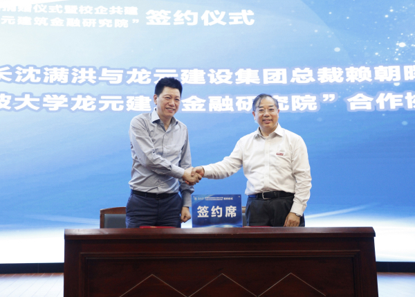 At the ceremony, Shen Manhong and Lai Chaohui signed a donation agreement and a cooperation agreement to jointly build "Longyuan construction and Finance Research Institute of Ningbo University".