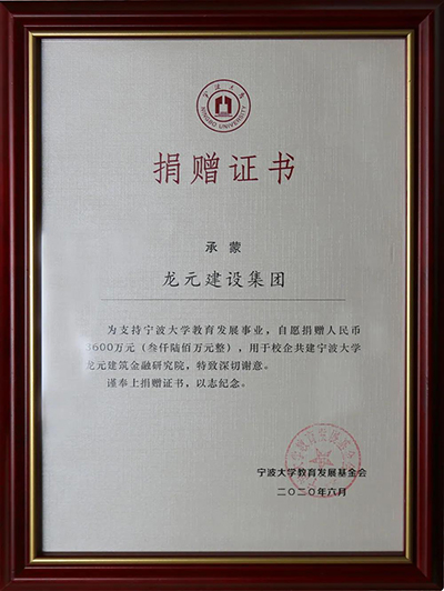 two thousand and twentyyear新冠肺炎疫情發生以來,龍元建設集團作為公眾企業,用實際行動踐行著國家號召。龍元振元慈善基金累計捐贈six39.2萬元致敬援鄂醫護人員。同yearsixIn March, Longyuan construction group helped the education cause, seeking improvement and development in cooperation, and cooperating with "double first-class" universities3six00萬,校企共建“寧波大學龍元建筑金融研究院”,創新人才培養模式,為行業培養現代企業應用型、復合型人才。“百year龍元,用心服務”,龍元建設集團始終堅持在創造價值的同時,不斷回饋社會。