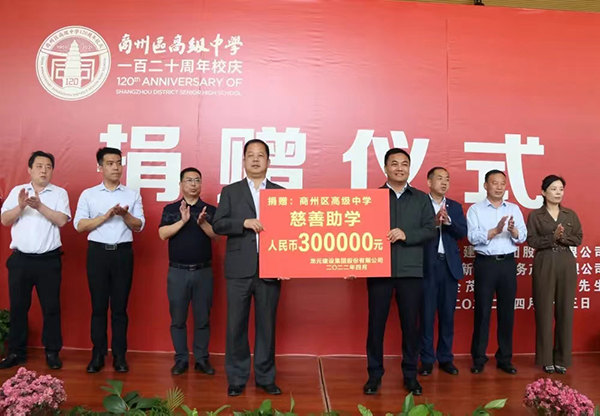 4月23日,由龍?jiān)瘓F(tuán)承建的陜西商州區(qū)高級(jí)中學(xué)舉辦120周年校慶捐贈(zèng)儀式。商州區(qū)高級(jí)中學(xué)PPP項(xiàng)目經(jīng)理周全茂參加捐贈(zèng)儀式,代表龍?jiān)瘓F(tuán)向商州區(qū)高級(jí)中學(xué)捐款30萬(wàn)元。此外,周全茂以個(gè)人名義與項(xiàng)目總指揮徐旭東共同出資捐款20萬(wàn)元,助力當(dāng)?shù)亟逃聵I(yè)發(fā)展。