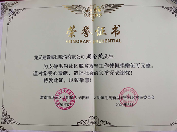 2020年,周全茂團(tuán)隊(duì)為華州區(qū)大明鎮(zhèn)毛溝新型農(nóng)村社區(qū)捐助善款五5萬(wàn)元,助力困難社區(qū)……