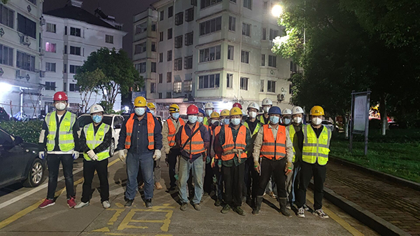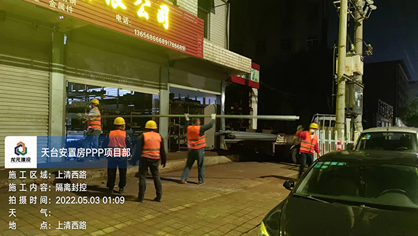 5月3日凌晨,項目工人再次響應(yīng)號召,前往援助城區(qū)街道落實封閉隔離措施。