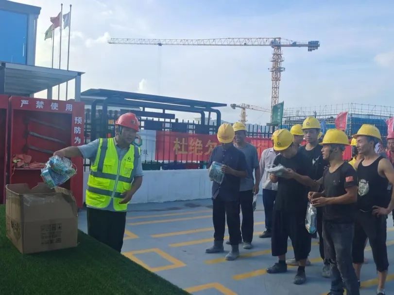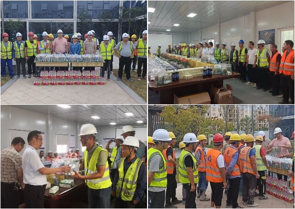 此外,集團(tuán)旗下子公司杭州城投建設(shè)、大地鋼構(gòu)、龍?jiān)⒑甑纫布娂娗巴?xiàng)目部,為一線工人送去清涼慰問物品,并詳細(xì)了解項(xiàng)目推進(jìn)情況和防暑降溫工作措施,叮囑工人們妥善安排好作息時間,在緊抓安全和進(jìn)度的同時做好個人防護(hù),預(yù)防高溫中暑。
