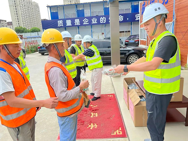 7月26日起,湖南分公司工程經(jīng)理黃怡帶隊(duì),先后走訪了大陸新廠房和株洲圣樺錦悅府項(xiàng)目工地,向堅(jiān)守在高溫一線的建設(shè)者們送上親切慰問,同時也帶去了分公司為他們準(zhǔn)備的夏季清涼用品,并對他們的辛勤付出表示感謝。