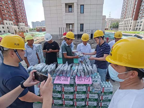 7月20日,天津分公司前往津?yàn)I大道項(xiàng)目部進(jìn)行高溫慰問,對工友們不畏高溫、忠于職守、辛勤工作表示感謝。分公司要求項(xiàng)目部要合理安排作業(yè)時間,盡量減少高溫時段戶外工作,切實(shí)維護(hù)職工勞動安全衛(wèi)生與健康權(quán)益,最大限度減少疫情和夏季高溫天氣因素疊加給職工生產(chǎn)生活帶來的不利影響,確保職工的勞動安全和身體健康,清涼、平安度夏。