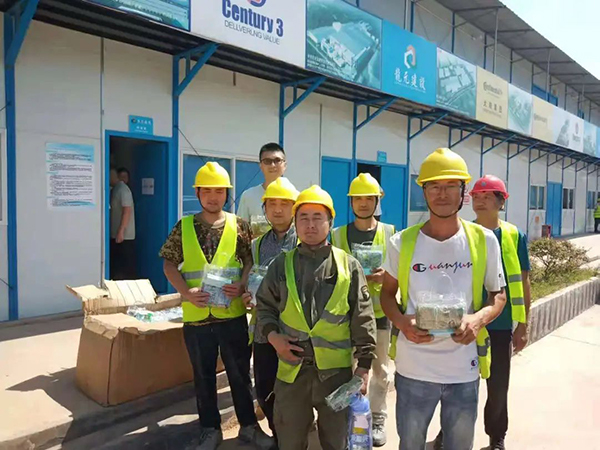 7月26-27日,湖北分公司開展“情系農(nóng)民工,夏日送清涼”的夏季慰問活動。工程部肖磊代表分公司為管家巷勵志文化商業(yè)街區(qū)及國投·華電蔚藍(lán)海岸項(xiàng)目部一線人員送去防暑降溫物品,將關(guān)懷和慰問送至每位一線工人們的心中,并對一線工人們再三叮囑,大家在工作中一定要做好防暑降溫工作,身心健康,才能更高效地完成各項(xiàng)工作任務(wù)。