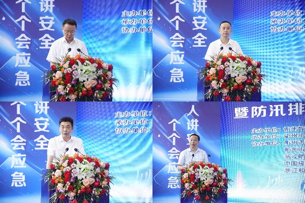 這是衢州市2023年安全生產月防汛排澇和消防救援應急演練現場。本次活動由衢州市智慧新城管理委員會、衢州市住房城鄉建設局主辦,龍元集團承辦。衢州市住房和城鄉建設局黨委委員、副局長吳群,衢州市慧城產業發展集團有限公司黨委書記、董事長、總經理陳衍華,衢州智慧新城管理委員會安全應急部部長黃斌出席活動并發言。項目各建設單位、施工單位、監理單位共200多位代表參加活動。龍元集團浙江公司副總經理夏柏生代表集團作表態發言。