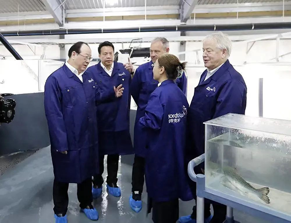 △彭佳學(xué)在北歐(中國)鮭魚RAS陸基養(yǎng)殖基地調(diào)研 (圖片來源:寧波發(fā)布)